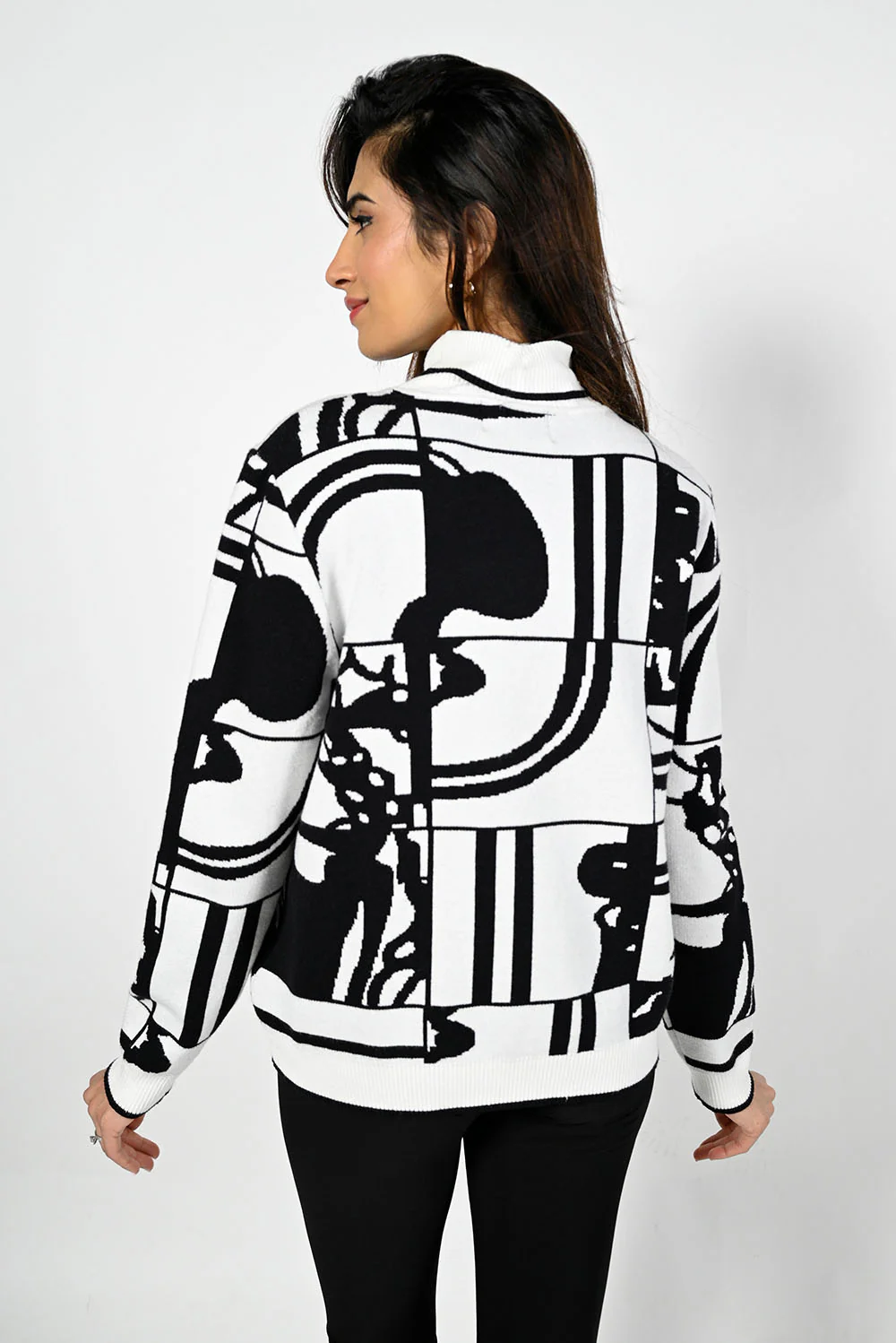Frank Lyman Black/Off-White Sweater Knit Top Style 223403U