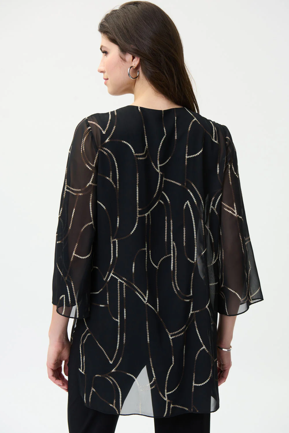 Joseph Ribkoff Black/Multi Chiffon Overlay Top Style 224093