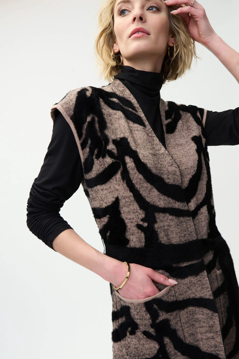 Joseph Ribkoff Camel/Black Animal Print Knit Vest Style 224947