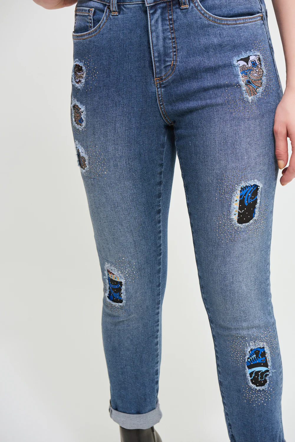 Joseph Ribkoff Denim Medium Blue Patchwork Jeans Style 213980